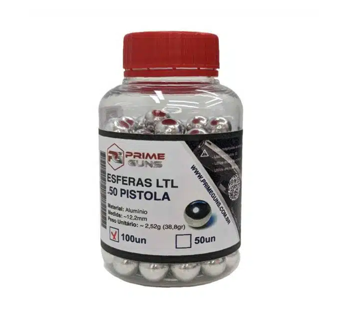 Fabricada em alumínio, as esferas .50 possuem medida de 12,2mm, projetadas especialmente para armas de defesa pessoal .50, como a Alfa LTL, Umarex HDP T4E e demais armas de Co2 que possam disparar esferas de calibre .50.