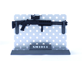 XM1014 - MINIATURA RIFLE XM1014- MINIATURA DE ARMA DE GUERRA PARA COLECIONAR, 14 CM COR PRETA, EM ABS, ACOMPANHA BASE EXPOSITORA, GRIP E LUNETA