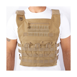 Equipamento tático essencial, Colete Plate Carrier COURAÇA - Coyote é fabricado em Poliéster 600D resinado. Possui sistema MOLLE com fitas de alta tenacidade que permite anexar objetos, bolsos modulares e compartimentos. Confortável, oferece ajuste ao corpo e ainda apresenta passadores para mangueira de refil de hidratação em ambos os lados.
