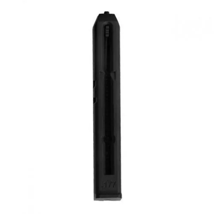Magazine para pistola de pressão Co2 com capacidade para 20 esferas de aço, construído com base de aço e trilho em polímero.