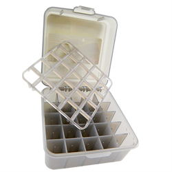 APLICAÇÃO: Multicalibre. Caixa de plástico com grade removível para 25 cartuchos. Única caixa que pode ser usada em 4 diferentes tamanhos de cartuchos.