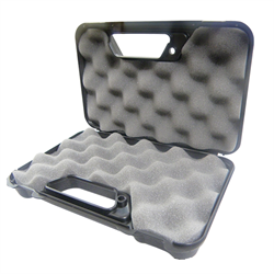 APLICAÇÃO: Maleta plástica com bordas arredondadas, modelo standard, para pistolas Colt 45 e 1911 ou para pistolas de bolso com comprimento do cano de até 3". Espaço para carregador de reserva mais a pistola. Ideal para lugares apertados, como cofres pequenos, guaritas de segurança e porta luvas de carro. Acompanha lingueta para cadeado e revestimento de esponja.