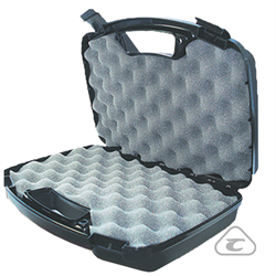 APLICAÇÃO: Maleta plástica com bordas arredondadas com medida interna de 24,7x14,6x7,6 cm, para pistola e revólveres. Com lingueta para cadeado e revestimento de esponja.