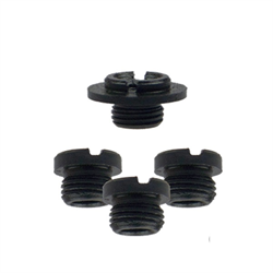 Conjunto de quatro buchas, sendo três sem arruelas e uma com arruela, para fixar as empunhaduras nas pistolas TAURUS antigas e atuais.
