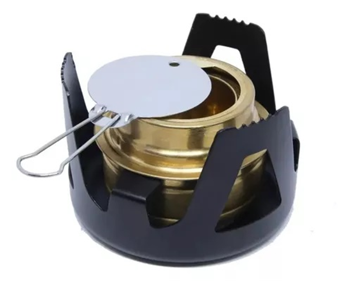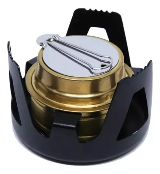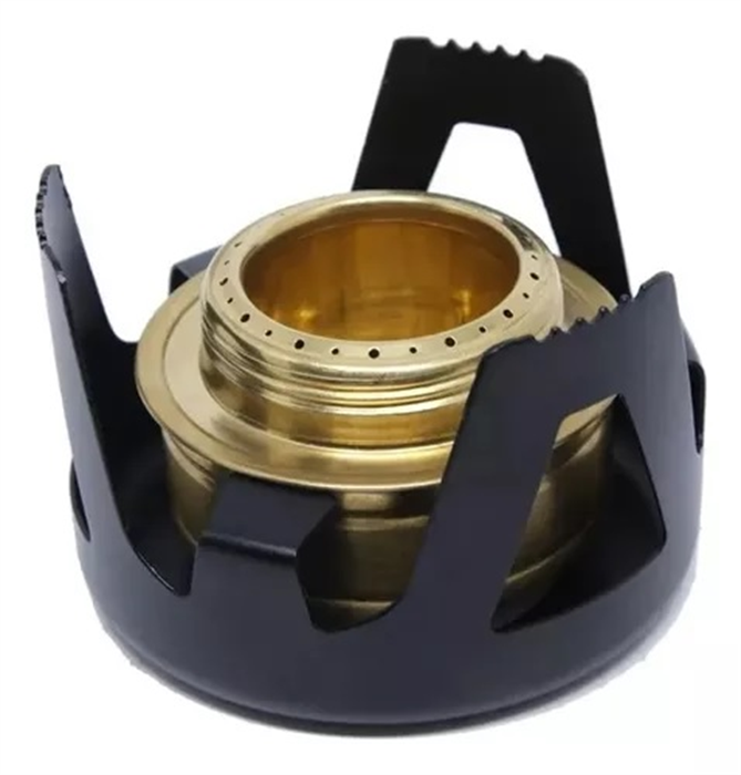 Possui formato semelhante à boca de fogão e conta com furos ao redor do fogareiro, que facilita a evaporação do álcool para a combustão.