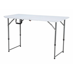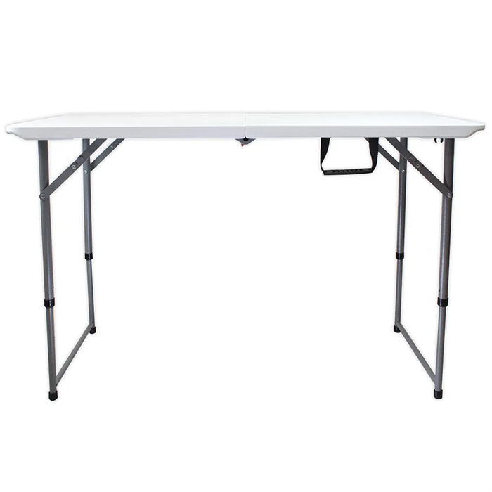 Design: Fabricada em polietileno de alta densidade, a mesa possui um sistema de travamento seguro para o tampo e opções de altura ajustáveis, proporcionando versatilidade e conforto durante o uso.