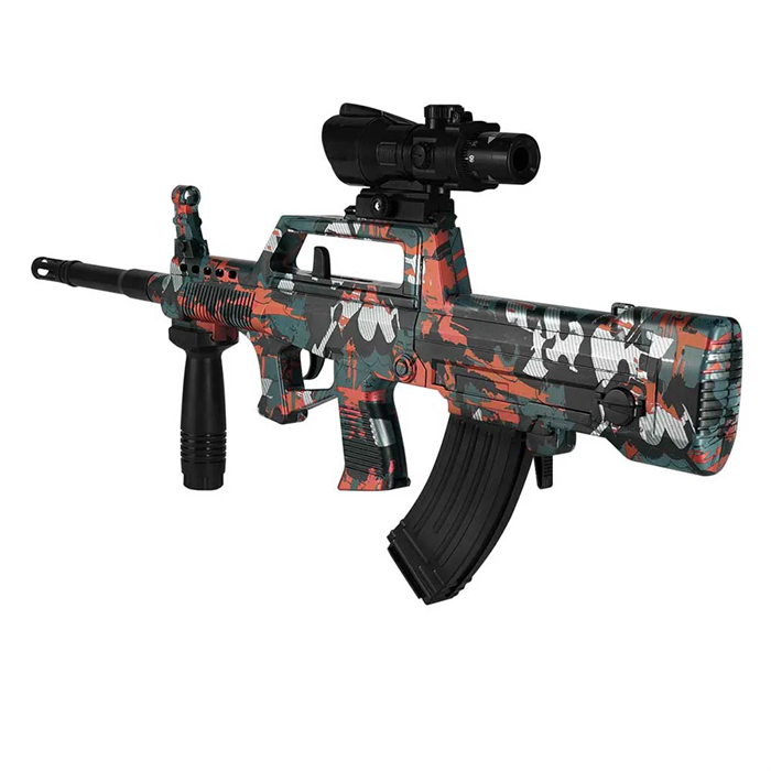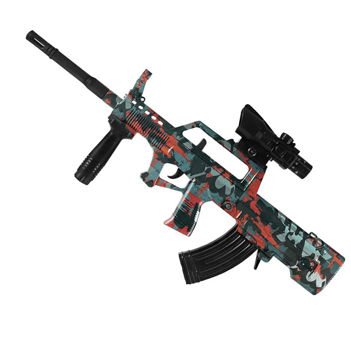 Esse daqui é um BRINQUEDO DE TIRO AO ALVO considerado de alta velocidade e que utiliza como “munição” ESFERAS DE GEL que são feitas a base de água.