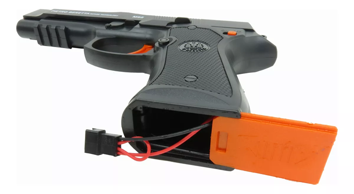 Este é um produto que é conduzido por uma mola e usa uma bola de gel como munição com composição de 90% de água.