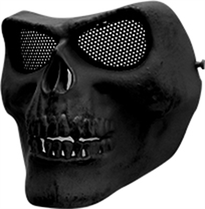 Mascara Tática Caveira Cor PRETA ABS c/ Tela em Metal - HY050