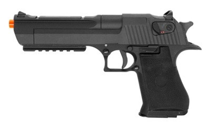 E esta é uma excelente versão para ser usada no airsoft. Além do modo de tiro semi-automático, a DE da Cyma também atira em modo automático. Possui engrenagens metálicas, slide fixo (que não se movimenta durante os tiros), utiliza bateria recarregável de 7,4V.