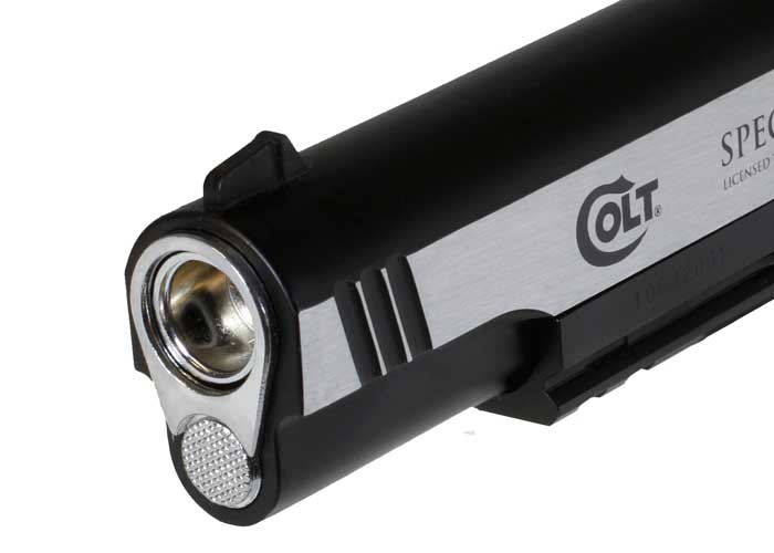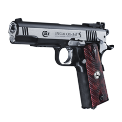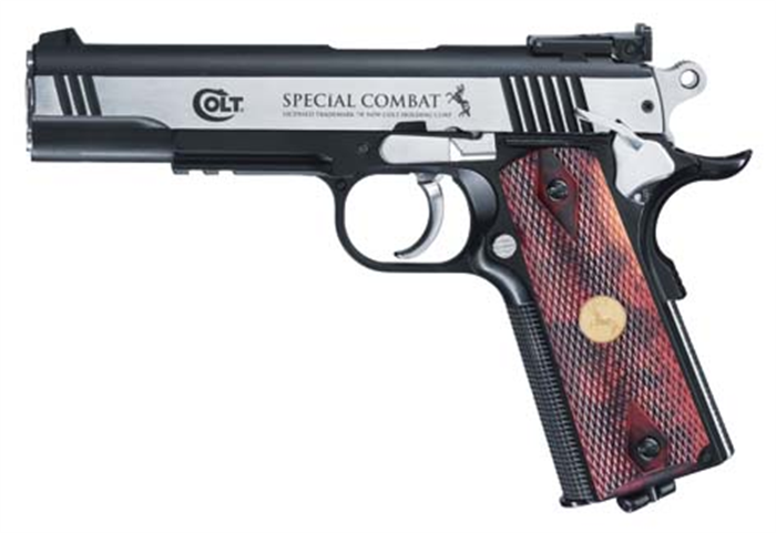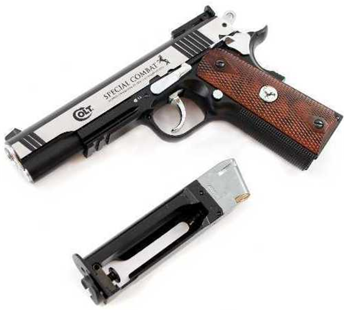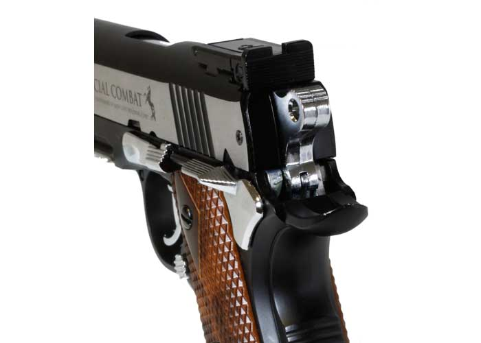 Robusta réplica em metal da lendária pistola Colt Classic. O slide móvel feito em aço inox repousa sobre o corpo com um trilho tipo Weaver. Este modelo popular de grande precisão possui ainda um gatilho de dupla ação e trava de segurança.