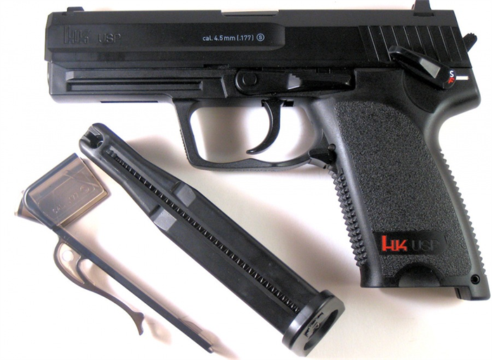 A pistola H&K USP é uma replica perfeita da versão original. Esta arma de CO2 é excelente para o tiro ao alvo. Possui um robusto magazine com capacidade de 22 tiros que também aloja o cilindro de CO2. A liberação do magazine é para ambidestros. É uma ótima pistola para pratica de tiro, especialmente para donos de pistolas USP de 9 mm. Por apenas alguns centavos por tiro, você pode praticar por horas.