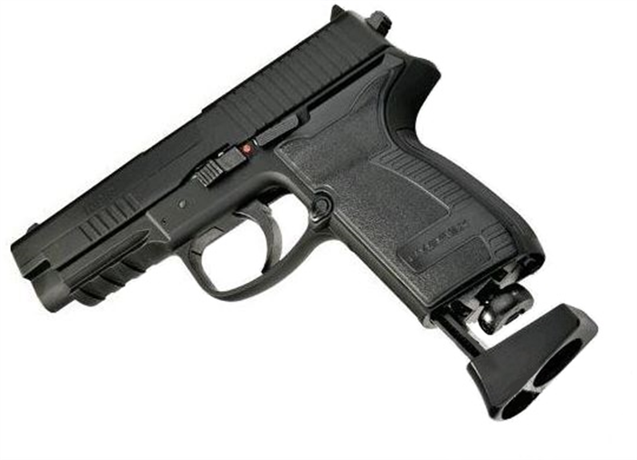 A robusta pistola, toda construída em metal, apresenta um magazine removível e um corpo com trilho para montagem de luneta. O inserto do punho removível permite a rápida troca da capsula de CO2. Outra característica notável fica por conta do gatilho macio e da facilidade de uso da segurança manual. Com uma capacidade de disparar até 50 tiros por cápsula de CO2, está pistola é revolucionária. Sistema de ação “blowback”