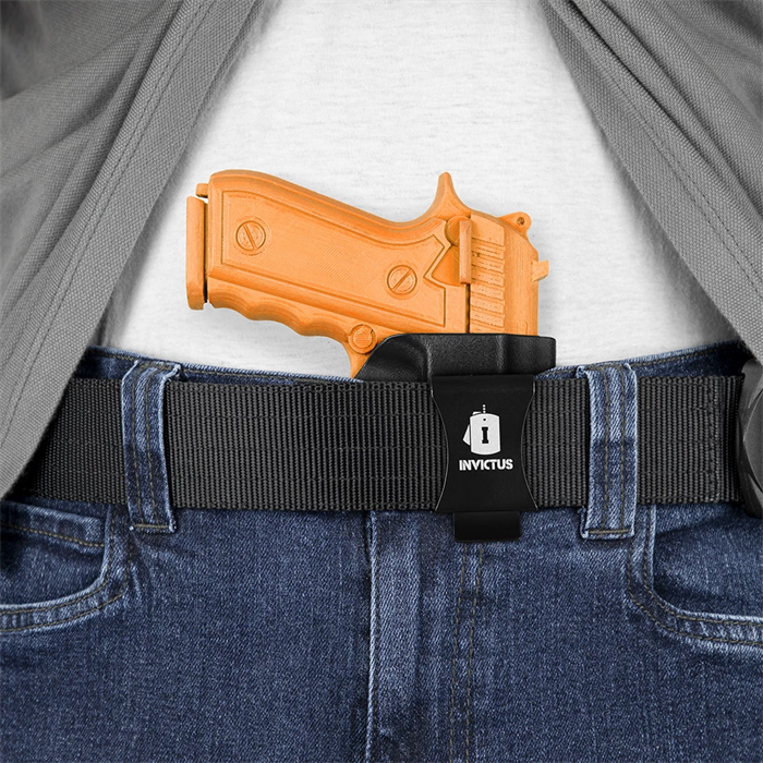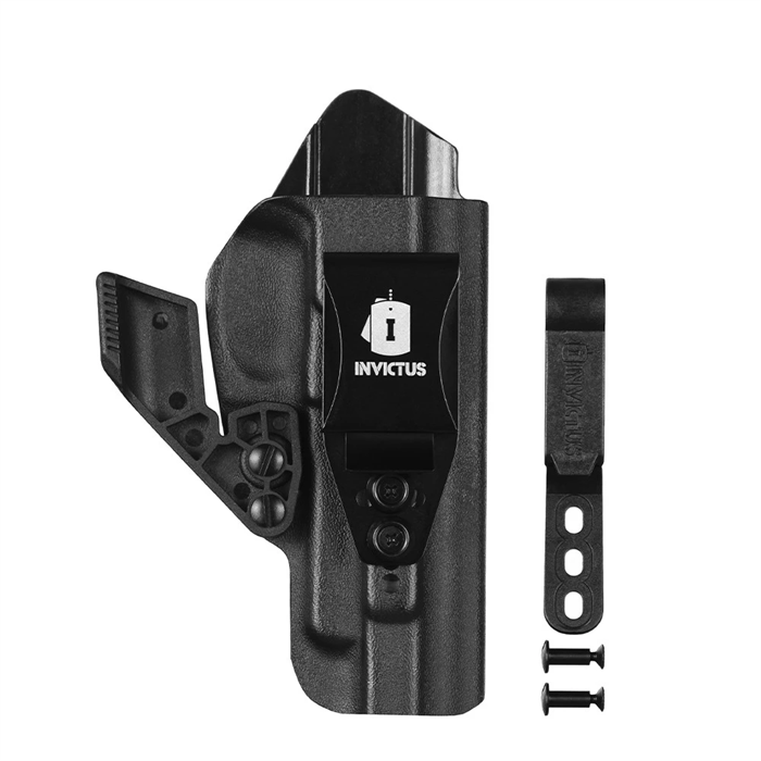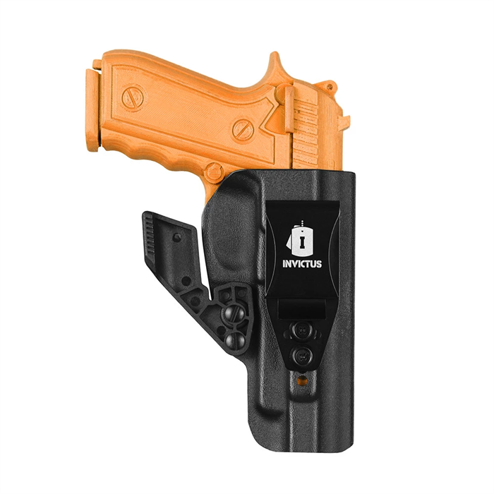 O Coldre KYDEX IWB 2.0 Destro INVICTUS Taurus® Série 100 têm tecnologia Kydex® USA, um produto diferenciado no meio tático, para operadores e operadoras que exigem o melhor, sempre. O Kydex® não deforma, não propaga chamas e é extremamente resistente ao impacto. Com duas opções de clip, um em polímero (POM), muito resistente, e outro clip metálico em aço inoxidável, com ajuste de ângulo. Ambos os clips possuem regulagem de altura. Os modelos ainda contam com redutor de volume, que pode ser retirado se necessário, e ajuste de retenção, com kit extra de parafusos.