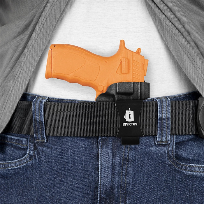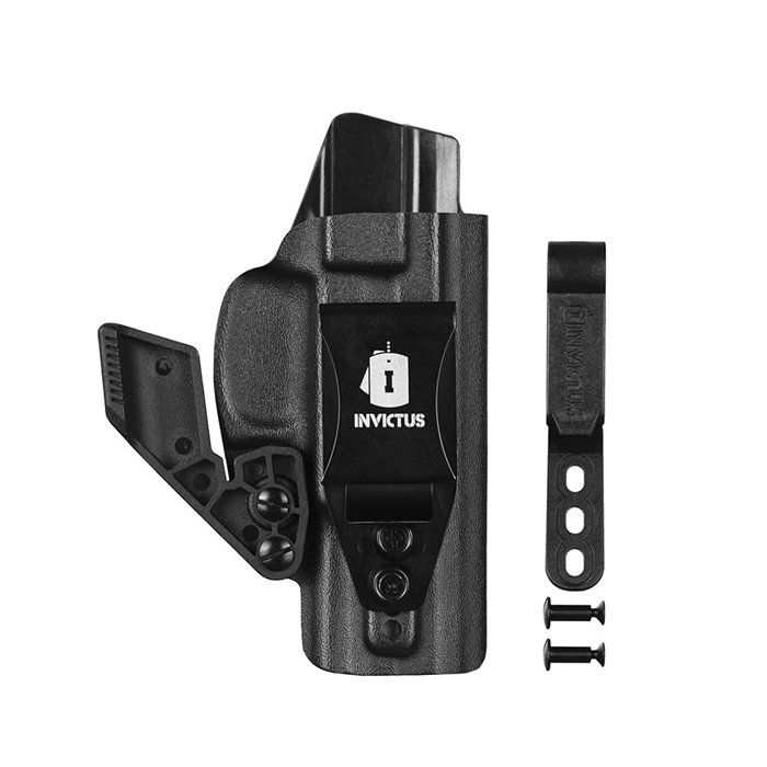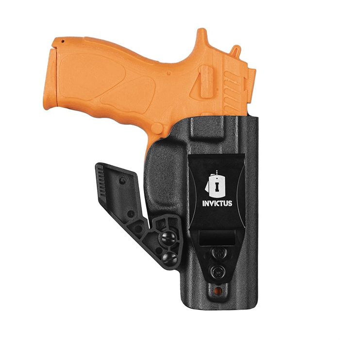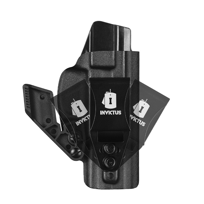 O Coldre KYDEX IWB 2.0 Destro INVICTUS Taurus® Série 800 tem tecnologia Kydex® USA, um produto diferenciado no meio tático, para operadores e operadoras que exigem o melhor, sempre. O Kydex® não deforma, não propaga chamas e é extremamente resistente ao impacto. Com duas opções de clip, um em polímero (POM), muito resistente, e outro clip metálico em aço inoxidável, com ajuste de ângulo. Ambos os clips possuem regulagem de altura. Os modelos ainda contam com redutor de volume, que pode ser retirado se necessário, e ajuste de retenção, com kit extra de parafusos.