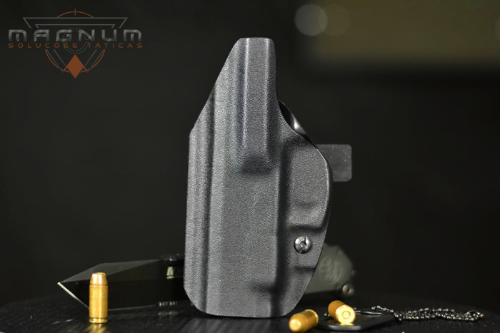 Desenvolvido com materiais de alta qualidade para garantir a segurança, confiabilidade e praticidade do produto, todos seus componentes são importados, desde os parafusos até a matéria prima principal, o kydex. Possui acabamento liso polido nas bordas do coldre.