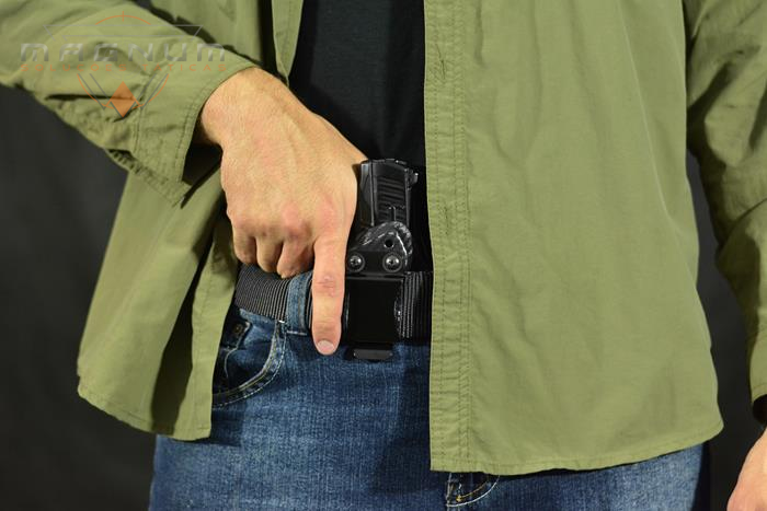 O coldre MAGNUM é a última palavra em coldre IWB (inside-waist-band). Ele combina velocidade, conforto, versatilidade, praticidade, confiabilidade, mobilidade, segurança e um alto grau de concealability (DISSIMULAÇÃO).