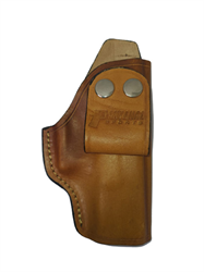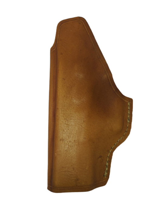 Coldre couro legitimo na cor Havana com passador de cinto e com botão para pistola Glock G19 / G19x / G25 / G28 / G45