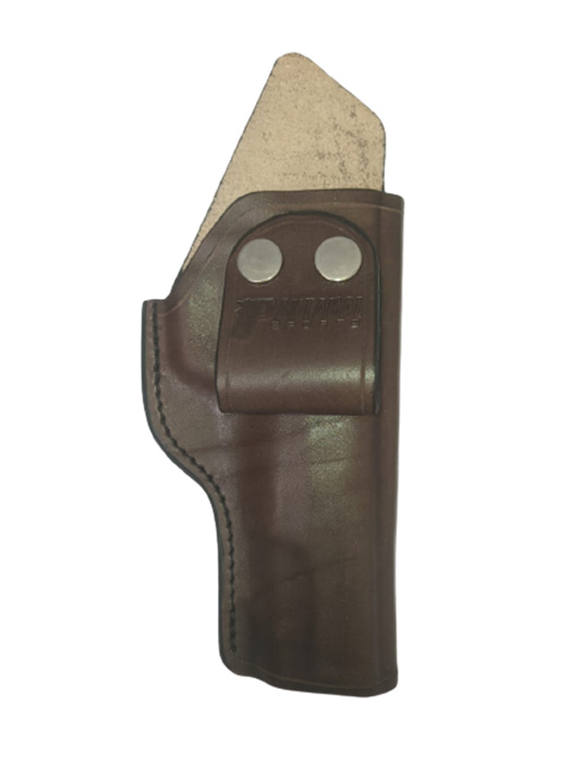 Coldre couro legitimo na cor Marrom com passador de cinto e com botão para pistola Imbel MD2
