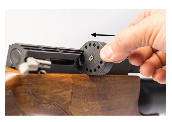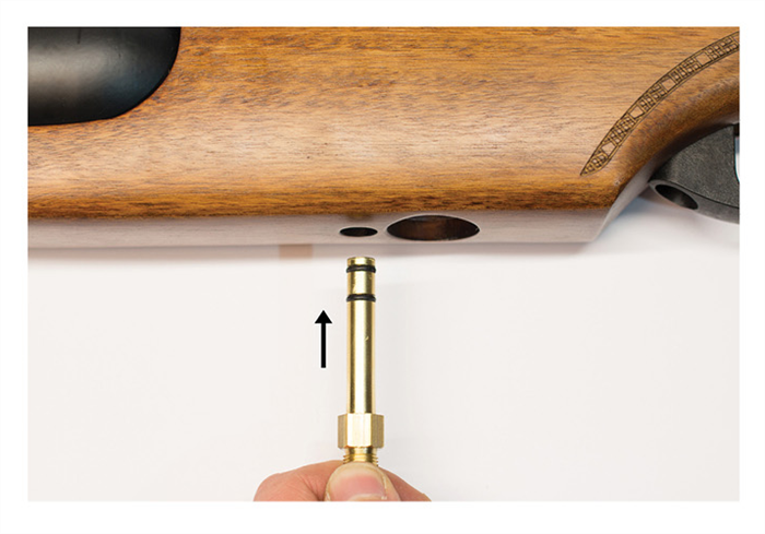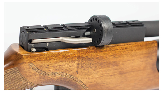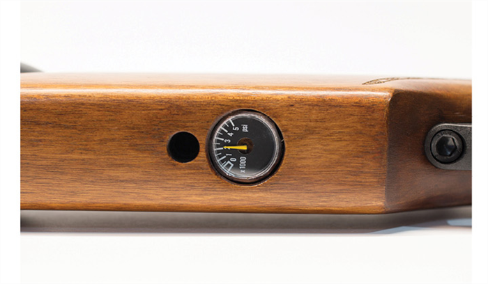 O gatilho é metálico e dourado, e possui dois estágios, a ação leve e o curso curto garantem disparos precisos e suaves, com muito conforto para o atirador, na frente inferior encontra-se o cilindro de armazenamento do ar, fabricado em alumínio com capacidade para 0,5L.