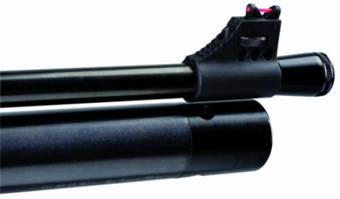- Alça de mira com ajustes laterais e de elevação;