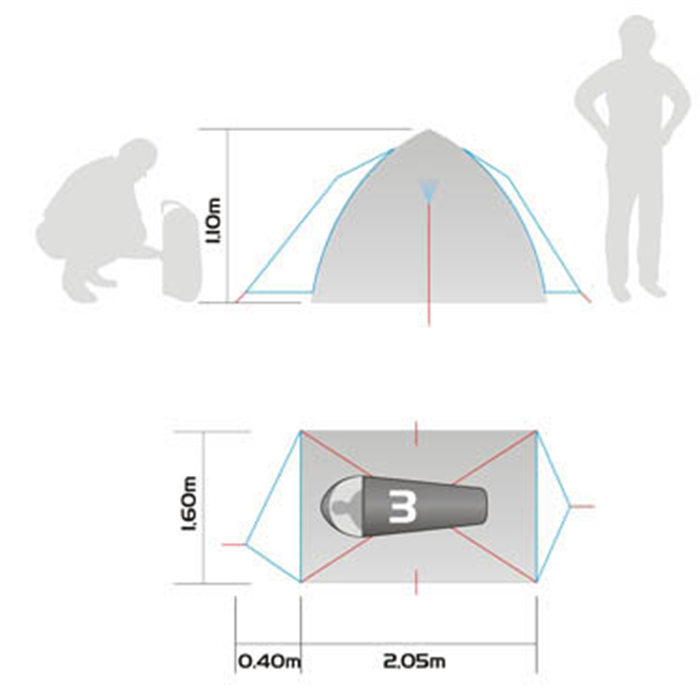 Sobreteto: Poliéster 190T com 800mm de coluna d’água, costura selada termo-soldada e proteção UV