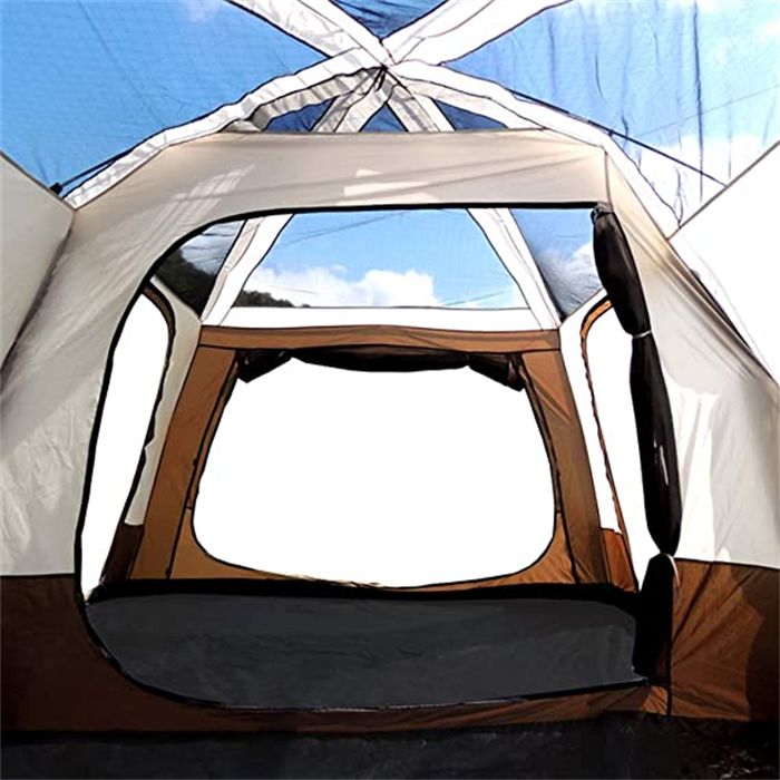 Amplo espaço interno, barraca bastante espaçosa, diferencial que proporciona maior privacidade e conforto, capacidade para até 12 pessoas.