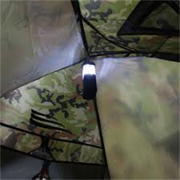 Sua estampa é em padrão camuflado, no estilo das forças armadas. É fácil de montar e bastante compacta, além de fácil de carregar por ser leve.