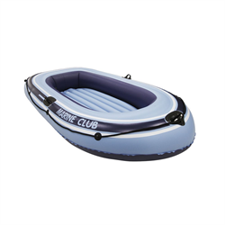 Esse modelo vem com 3 câmaras de ar independentes e suportes para remos (remos não inclusos). Muito resistente e estável suporta até 195kg.  Seu modelo é feito com um material de PVC laminado texturizado. Capacita confortavelmente até duas pessoas.