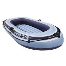 Esse modelo vem com 3 câmaras de ar independentes e suportes para remos (remos não inclusos). Muito resistente e estável suporta até 210kg.  Seu modelo é feito com um material de PVC taminado texturizado. Capacita confortavelmente até três pessoas.