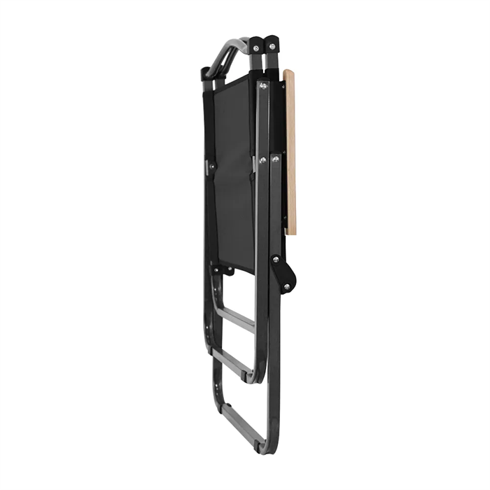 - Material: Estrutura em tubos de aço, tecido em poliéster 600D, partes em polímero e acabamento em madeira