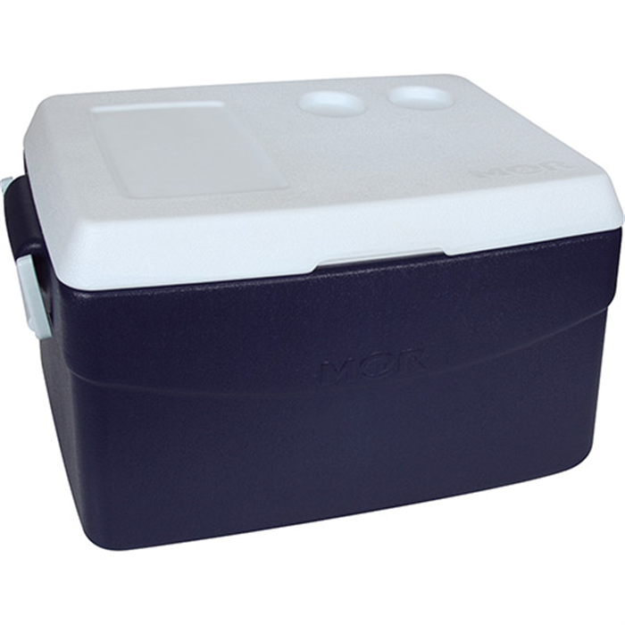 A Caixa Térmica Mor têm a mesma qualidade garantida da marca que carrega. Possui a parede interna em polipropileno, o isolamento térmico é em poliuretano, além da parede externa e tampa serem de polietileno. Comporta 82 unidades de latinhas de 350ml ou 10 unidades de garrafas pet de 2 litros, tanto em pé ou deitadas. A caixa possui um design moderno que permite apoiar duas latas na parte superior, além de duas alças laterais que ajudam no transporte.