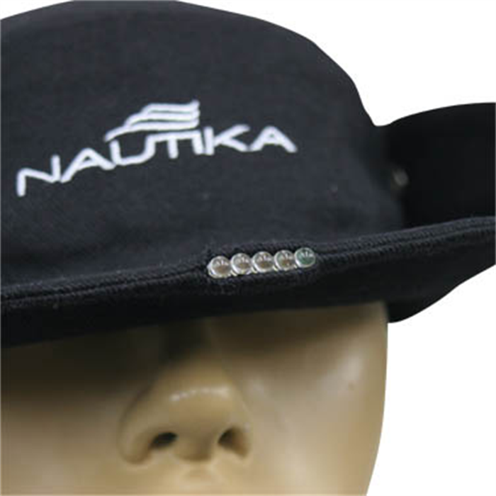 • Boné com sistema de iluminação com 5 LED’s embutidos na aba