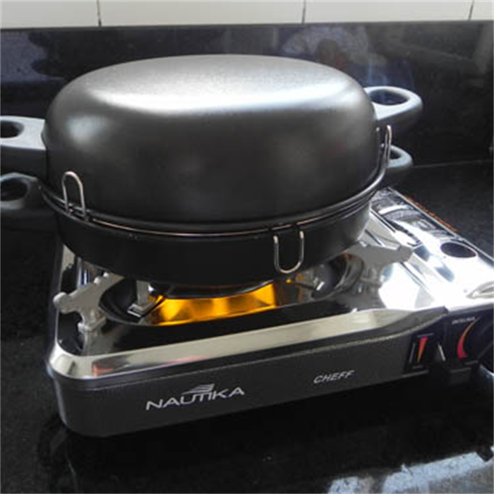 Material: Ferro com revestimento anti-aderente e grelha em aço
