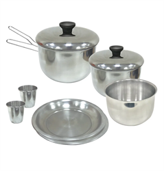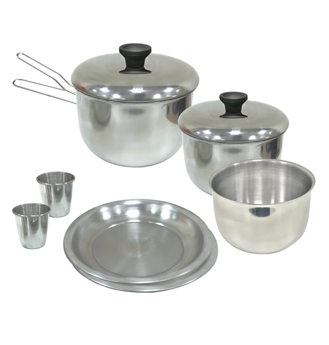 Esse excelente conjunto é composto por dois pratos, duas panelas, dois copos, um bowl e um pegador retrátil, com itens que se encaixam um dentro do outro, ocupando o mínimo espaço possível na mochila.