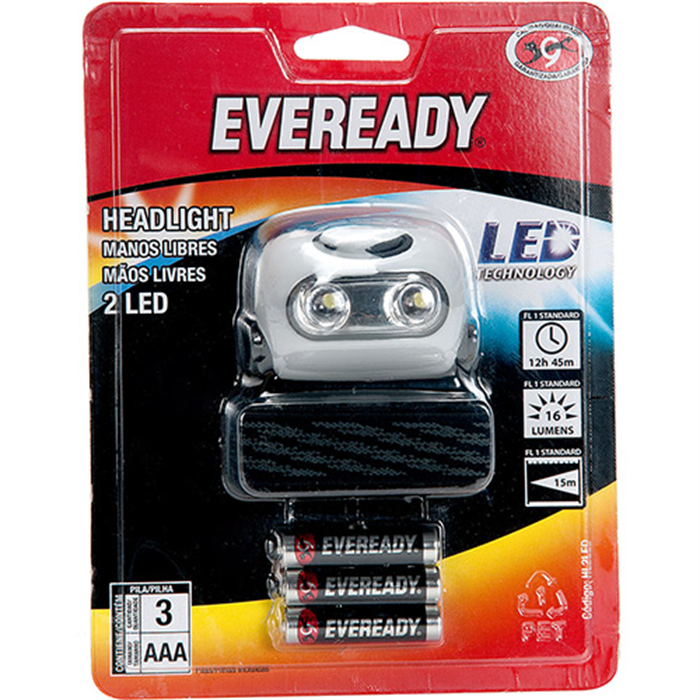 • 1 Lanterna de Cabeça Vermelha Mãos Livres com Regulagem de Foco LED 3 Pilhas AAA Eveready HL2LED