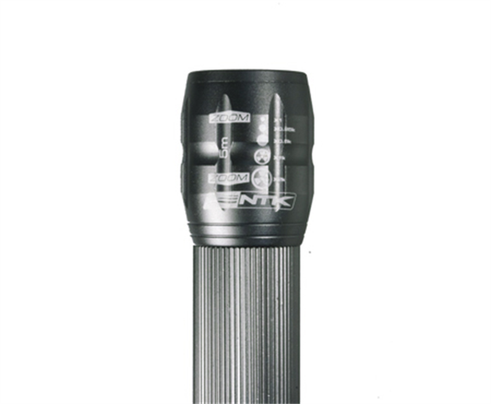 A lanterna Spectra, da NTK, possui um modelo tático com botão de acionamento traseiro, LED super brilhante. Compacta, resistente e potente.