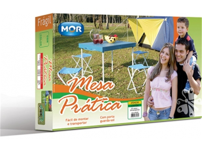 * O próprio nome diz, Praticidade é a palavra chave desta mesa. Com um sistema de fechamento em forma de maleta, a Mesa Prática Mor ocupa pouco espaço tanto no transporte quanto na hora de guardar. Além disso, acompaha banquetas independentes que podem ser usadas a qualquer hora!