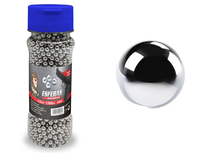 As Esferas de Aço Niquelado calibre 4.5 mm tem gramatura de 0,35 gramas cada e são de alta qualidade.