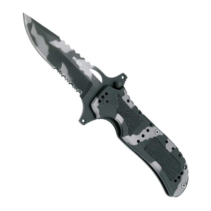 Canivete Defender camuflado semi serrilhado