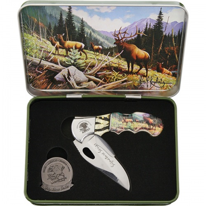 Canivete Les Kouba lata comemorativa. Acompanha certificado de autenticidade, medalhão comemorativo "North American fishing club" e lata metálica. Características: Tamanho total: 17,2 cm Cabo: 10,2 cm. Lâmina: 7 cm cm. Material da lâmina: Aço inox. Garantia 6 meses. País de origem: China. Fabricante: Outras marcas