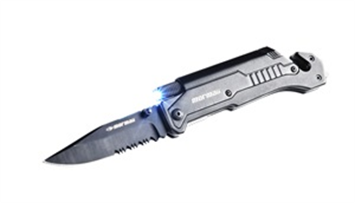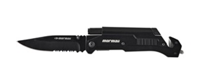 O canivete Brigade mormaii é ideal para casa, camping ou pescaria. Possui lanterna Led, corta cinto, quebra vidros, pederneira (pedra faisca em magnésio)