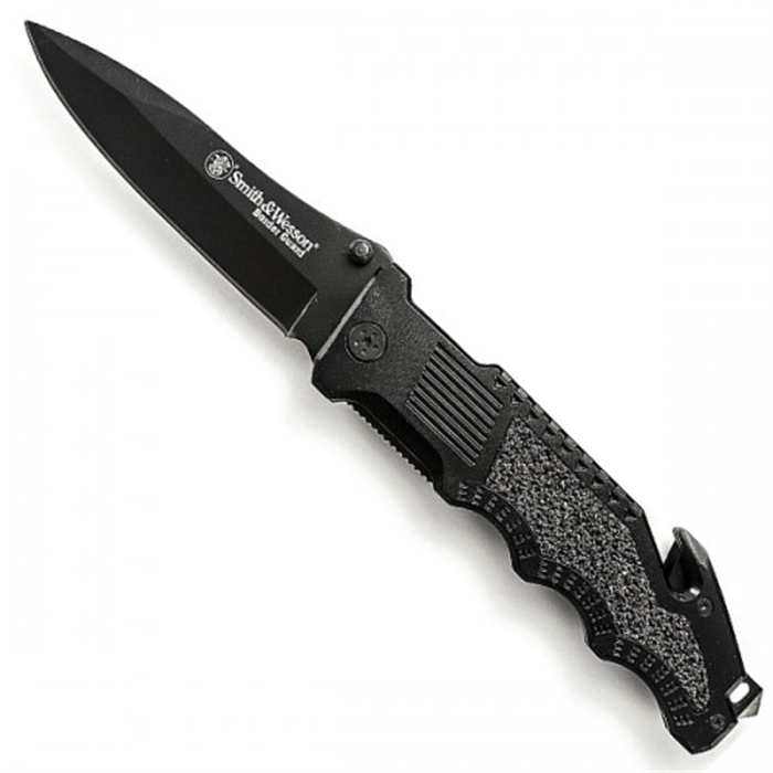 Canivete Smith & Wesson com corta cintos e quebra vidro, com tala em alumínio.
