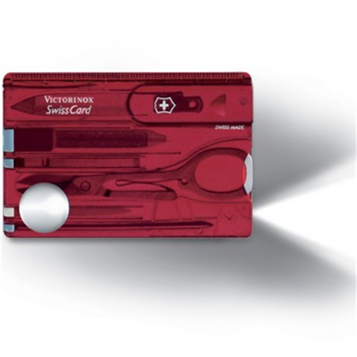 O SwissCard é um elegante canivete multifuncional da tão conhecida marca Victorinox. Um legítmo canivete suíço com dimensões que se aproximam de um cartão de crédito, podendo ser utilizado no bolso ou até mesmo dentro da carteira. Em um pequeno espaço armazena 13 diferentes funções que podem ser muito utilizadas no dia-a-dia.