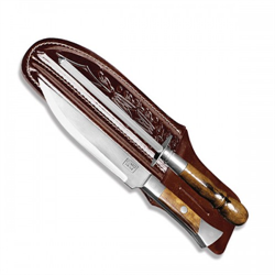 Conjunto com faca 2450/6 com lâmina em aço inox 420, lâmina com perfil multi uso, ideal tanto para o seu churrasco ou eventualidade, cabo anatômico em alumínio e madeira, acompanha chaira 6" (afiador) para manter o fio de corte sempre afiado e bainha para ter o seu conjunto sempre perto de você.