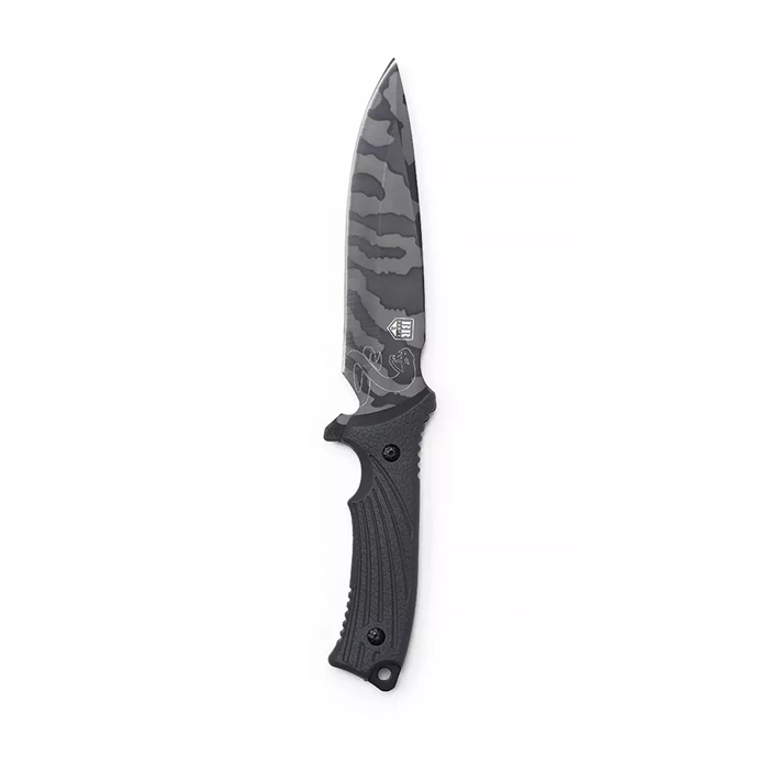 A Faca BR FORCE Sucuri possui lâmina em aço 3cr13 em acabamento com pintura camuflado e cabo em polímero. Vem também com bainha em Nylon® e alça porta-fiel.