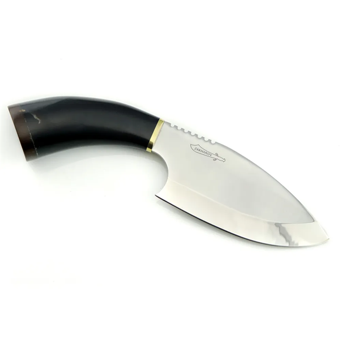 Com um design robusto, lâmina pesada e espessa (5 mm) para facilitar a quebra de coisas mais duras como: ossos, destrinchar aves, facilitando o preparo de alimentos. Sua lâmina larga pode servir para amassar temperos e os pequenos dentes no seu dorso poderão servir como apoio do dedo. Como o próprio nome sugere, a faca Zakharov Exótica, tem o cabo feito com chifre bovino sendo uma ótima opção para colecionadores.