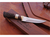 O destaque especial desta Faca é para o cabo, que possui desenhos de arabescos em alto relevo feitos na nobre madeira Jacarandá e um filete de Osso de avestruz.