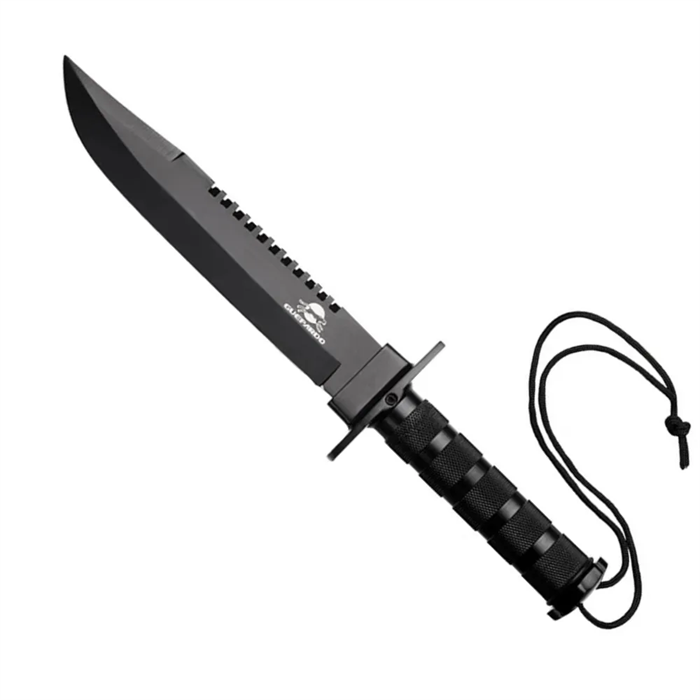 Além disso, a Delta tem revestimento tático antirreflexo, que é um diferencial se comparado a modelos do mesmo porte de outras marcas. Ela conta com serra no dorso da lâmina, guarda para maior segurança na empunhadura e cabo com corda em nylon.