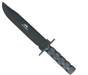 - Possui: bússola, pedra para amolar e um mini kit de sobrevivência com 2 fósforos, 2 anzóis, lâmina, linha em nylon, lápis, pinça, chumbinhos e alfinete prendedor;